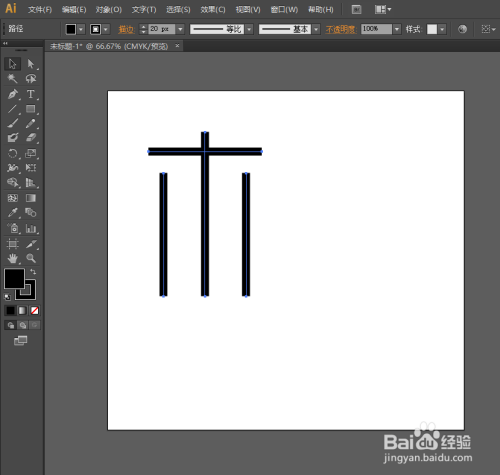 利用钢笔东西画出所需要的线条,而且将线条的描边参数,此图的描边参数是20px