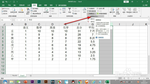 3.然后鼠标点击上方的数据选项卡,点击下方的——数据验证按钮。