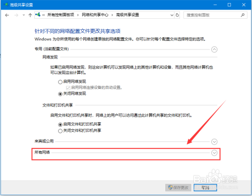 【5】在“高级共享设置”页面,点击“所有收集”地点行肆意位置;