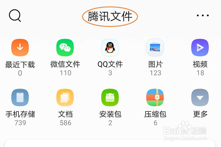 在切换到的腾讯文件页面,系统会主动对文件进行分类,好比有图片、视频还有文档以及安装包等;