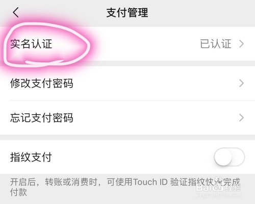 第四步,进入支付设置界面后,点击“实名认证”。