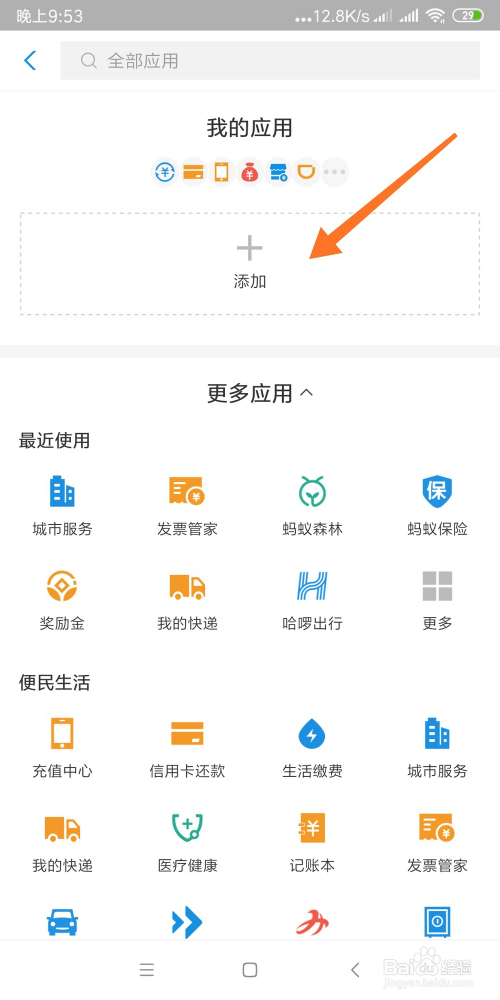 回到支付宝首页发现被添加的应用被添加当作功。