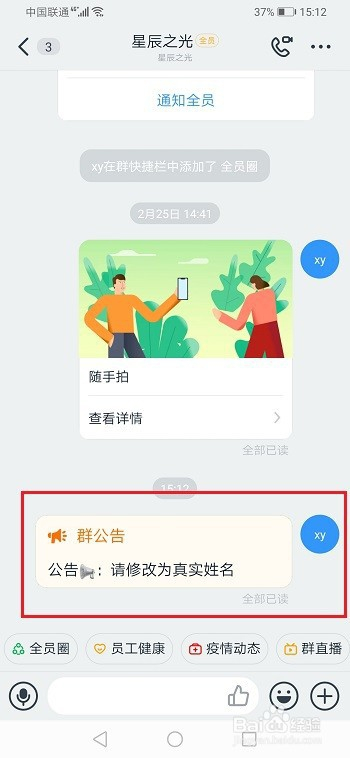 第五步可以看到已经当作功发布群通知布告了,如下图所示: