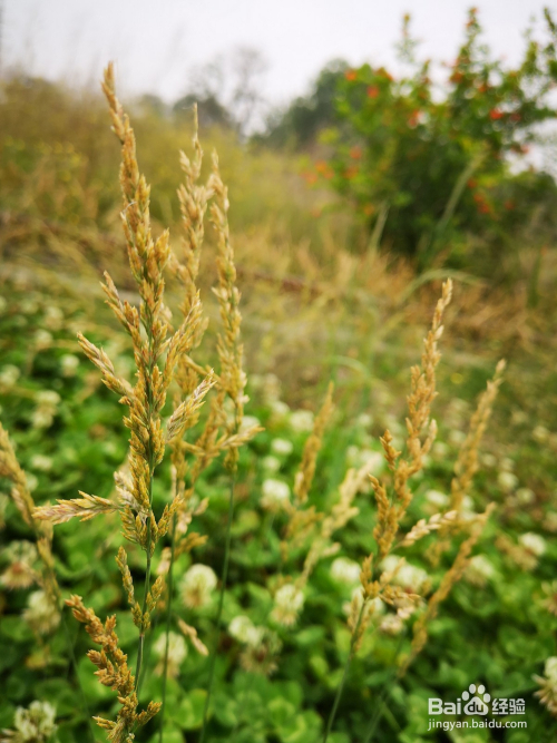 拍摄路边的植物是最便利的,也能拍出来意想不到的成果,必然要找一个晴天气,绿化比力好的一块草地,罢休机放低,根基与植物平等高度,选择微距,布景恍惚,例如这样