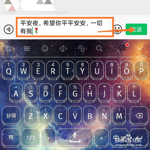 接着,我们在聊天框里面输入安然夜祝福的话语。如安然夜里安然有您。