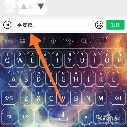3、在聊天框里面输入安然夜祝福的话语。如安然夜里安然有您;