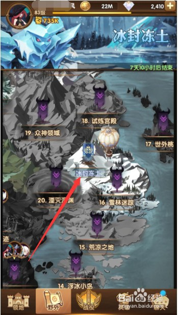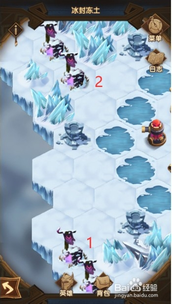 3、接着就可以进入冰封冻土的副本游戏了,推图,也要注重地图的挨次。