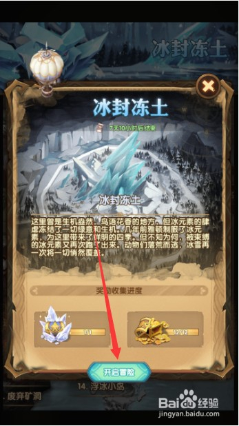 2、进入冰封冻土副本之后,点击“开启冒险”。