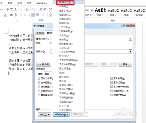接着点击弹出框最下方的“特别格局”,在呈现的下拉菜单中,点击“段落标识表记标帜”,具体如下图所示:
