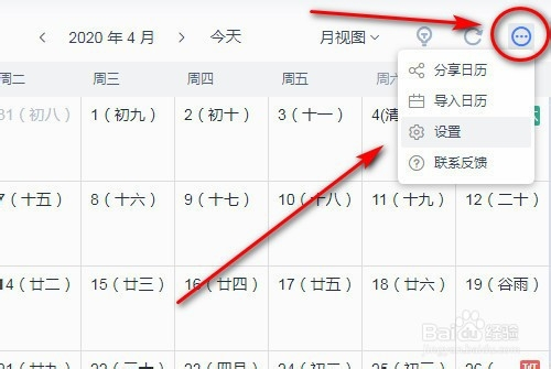 在日历右上角的设置菜单里可以进行各类功能设置。