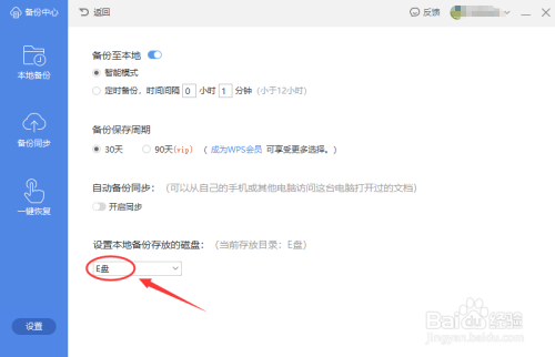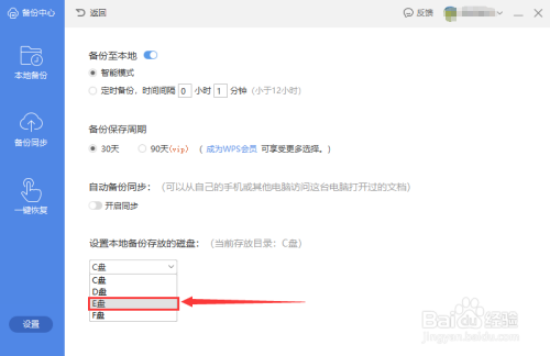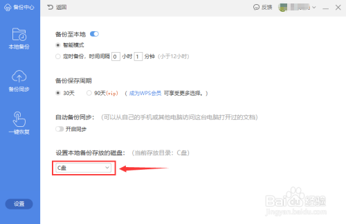 在“设置”页面,点击“设置当地备份存放的磁盘”下方的方框肆意位置。见下图