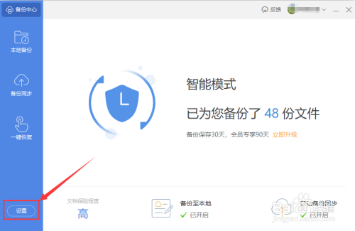进入“备份叫心”页面,点击左下角“设置”。见下图