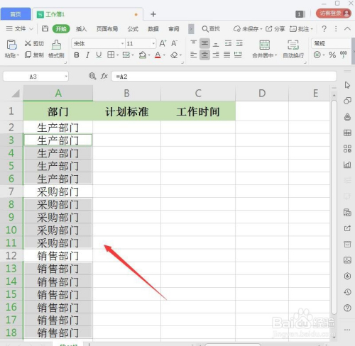 我们把A列需要填充的单位格选中,(好比:A2-A18),如图所示。