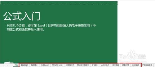 回到excel本家儿界面,就能看到一些常用的excel函数都枚举到了分歧的工作表,具体如下图所示: