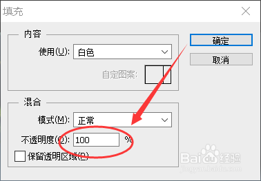 不透明度设置为100%。