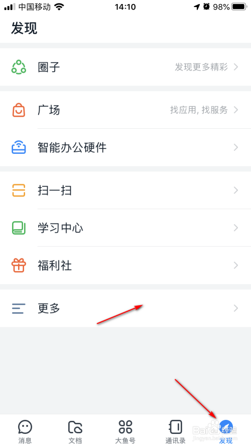 首先,我们打开钉钉,点击下方的【发现】选项,再点击【更多】选项栏。