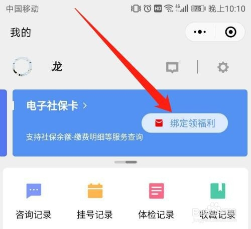 然后点击【授权绑定社保卡】按钮,如下图所示。