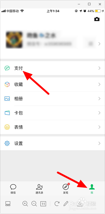 打开微信,点击“我”,进入“支付”选项。