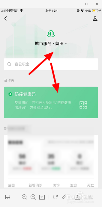 选择城市,点击“防疫健康码”。