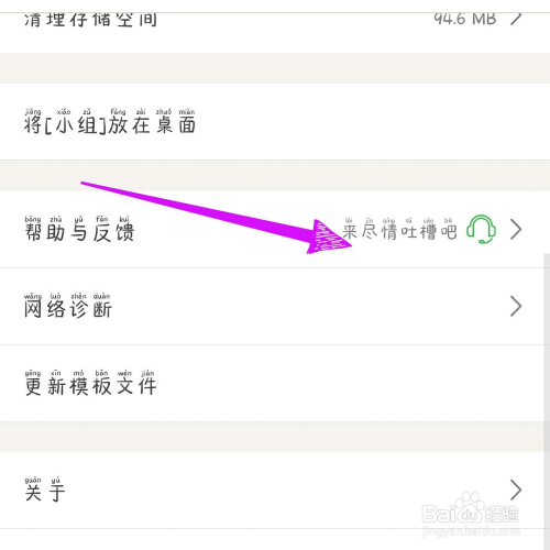 第三步,点击设置中的【帮忙与反馈】功能。