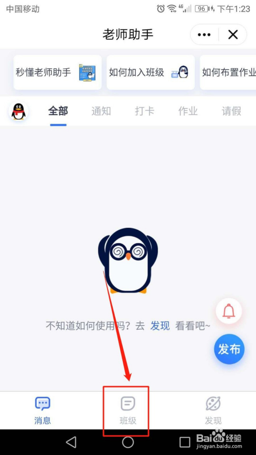 进入“教员助手”界面,点击页面底部“班级”选项卡。