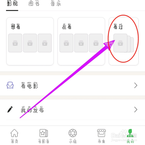 第二步,在豆瓣APP小我中间,点击【看过】按钮。