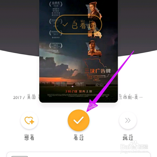 第四步,若是不是看过的片子标的目的上划,是看过的片子标的目的下划即可标识表记标帜为【已看过】。
