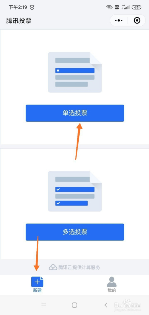 进入小程序后,在【新建】菜单栏中点击【单选投票】。