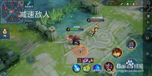 5.如图所示,典韦三技术的用处三:减速仇敌。典韦开启三技术,直接跳斩到仇敌的头上,可以让仇敌在3秒的时候内减速一半,这样像没有位移的脆皮英雄,就很轻易被典韦抓到而且秒杀了。