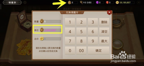 镇魔令每枚需要300万游戏币,点击肆意镇魔录或者点击上方的镇魔令加号,即可采办镇魔令。