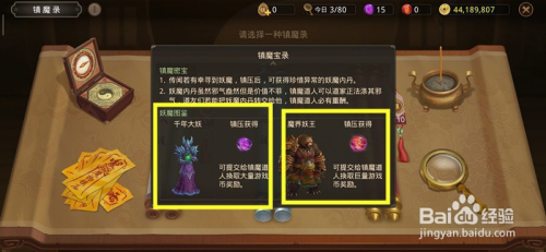 镇魔录分为六合人三级别,每次摸索需要镇魔令,天级别需要10枚,地级3枚,人级1枚。