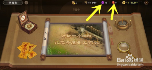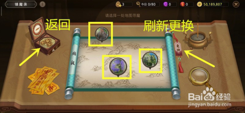 我们有了镇魔令,可以前去六合人三级别镇魔录寻魔,点击您认为有魔的地图即可探寻,相迎级别对应的镇魔令也就会耗损了。左上角可以返回,右侧有刷新地图。