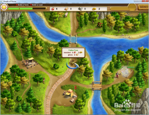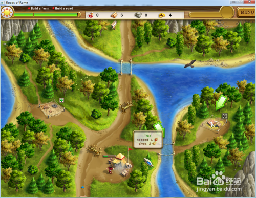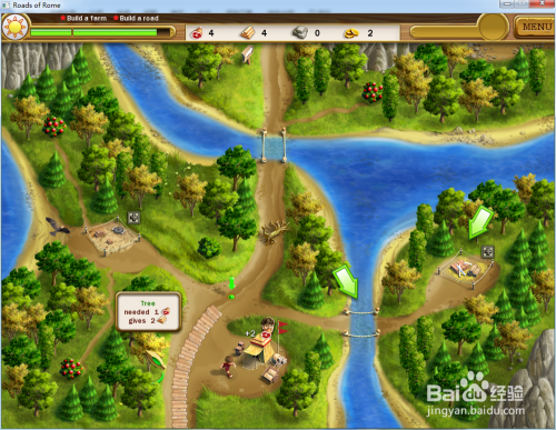 操纵工人断根中心道路上的树木,然后修复上方的吊桥,最后修复上方的道路,本关的使命就完当作了。