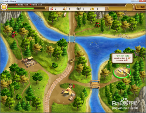 当木头达到6时,建造右面的农场,同时操纵工人收集左上方的食物。