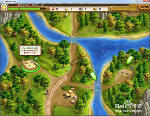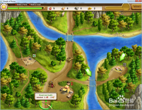 操纵工人修复下方的道路,同时收集中心的食物及砍伐树木。