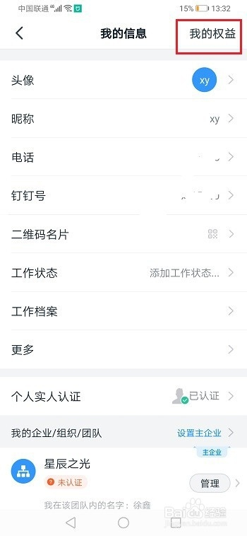 第三步进去我的信息界面,点击我的权益,如下图所示: