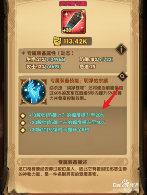 点击进入后,即可查看该英雄的专属装备属性。