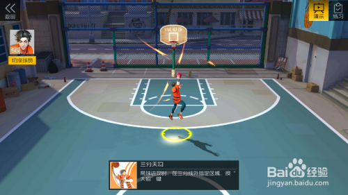 6、三分天勾:以天勾投篮的动作投出高弧线的三分球。