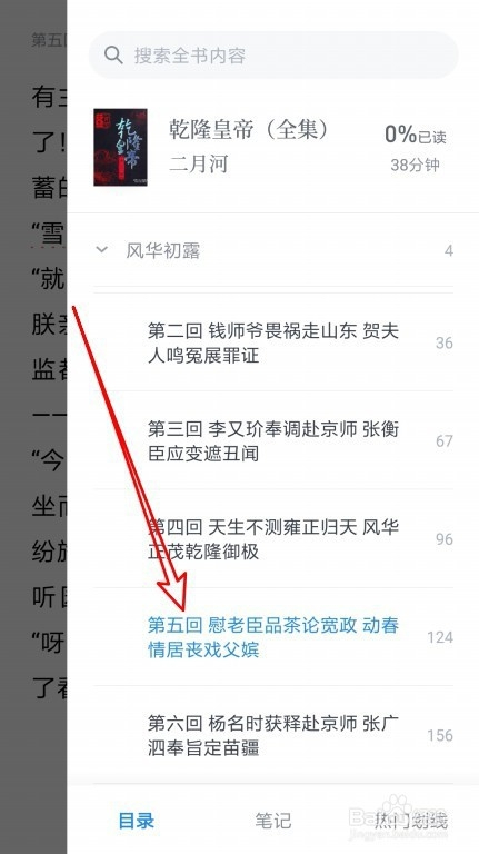 5、在打开的菜单中就可以看到该图书的目次列表了。