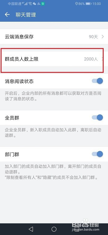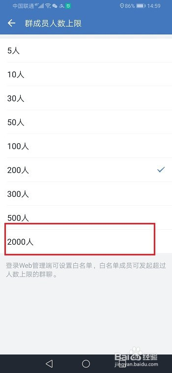 第五步可以看到已经设置群人数上限2000人,按照需要设置,如下图所示: