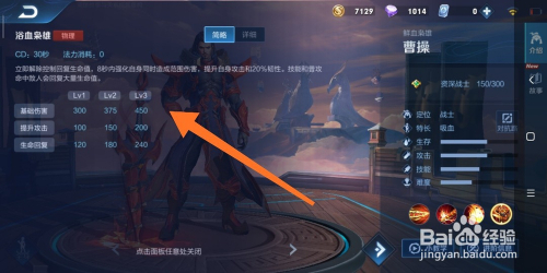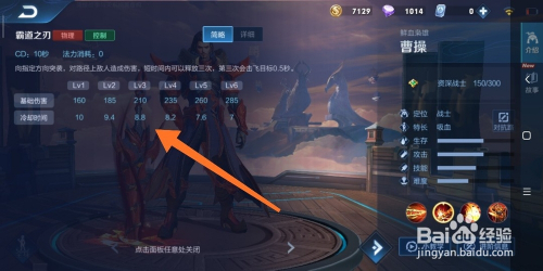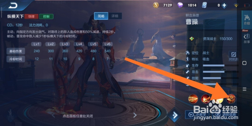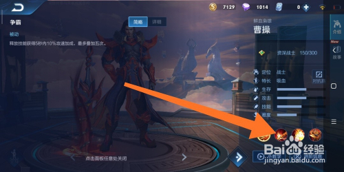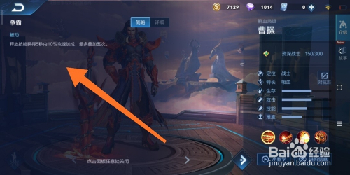 11.如图所示,弹出的面板中的内容,就是曹操这个英雄,二技术的弄法申明了。