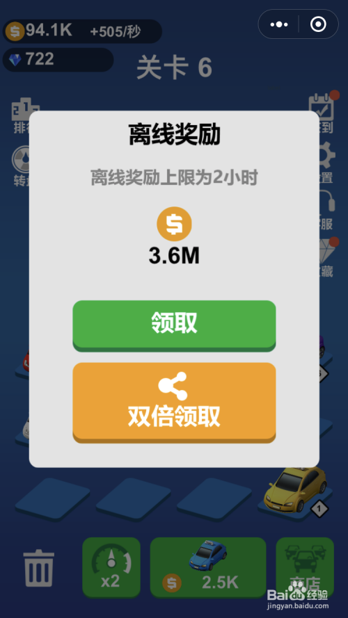 游戏中获得金币的方式最简单的就是挂机获得的离线奖励了,可以用金币来买车