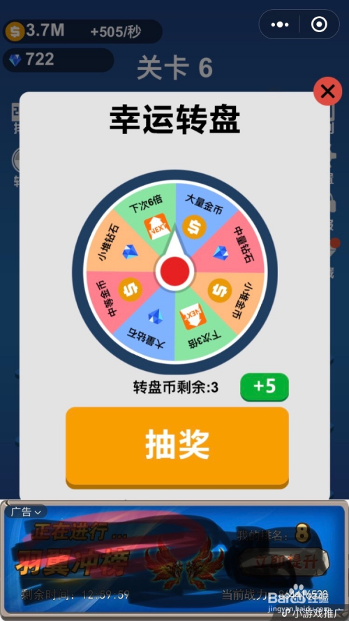 这个游戏中还有获得游戏金币的方式就是幸运转盘了,可是看命运