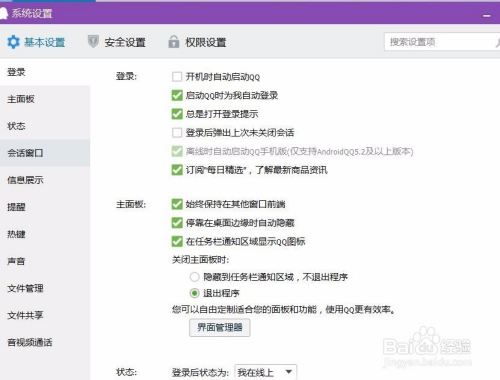 第一步先在电脑上登录qq,再点击左下角图标的设置图标