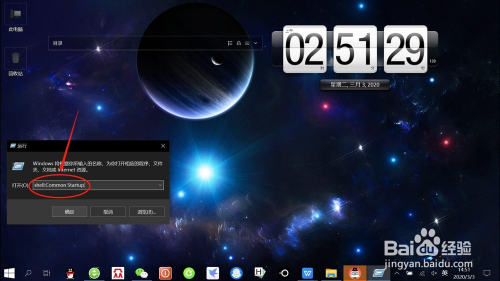 在“运行对话框”中,输入“shell:Common Startup”号令,如下图所示。