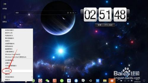 右键点击桌面“起头”——“运行”,打开“运行对话框”。