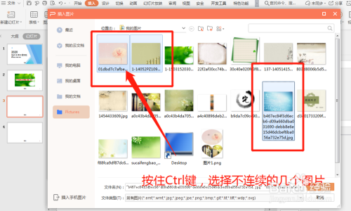 按住Ctrl键,选择不持续的几个图片,选择打开;