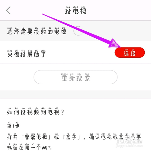 - 投屏电视和手机必需毗连统一个WIFI。