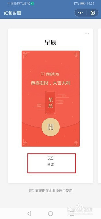 第三步进去红包封面界面之后,点击点窜,如下图所示: