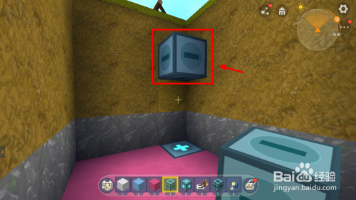 4、贴着滑动方块+面的位置放置-号标识表记标帜器,、用方块进行填充。